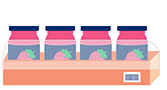 Example: a promotional display containing both strawberry jam and blueberry jam.